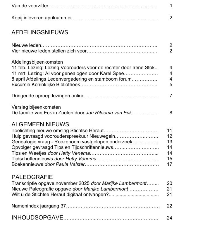 Genealogie UTR – de Stichtse Heraut 2026 – 1 Door Redacteur-NGV - Mathieu Hendriks - 31 januari 2026 0 4 FacebookTwitterWhatsAppEmailAfdrukken Inhoudsopgave